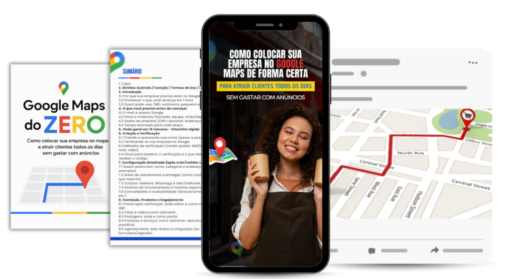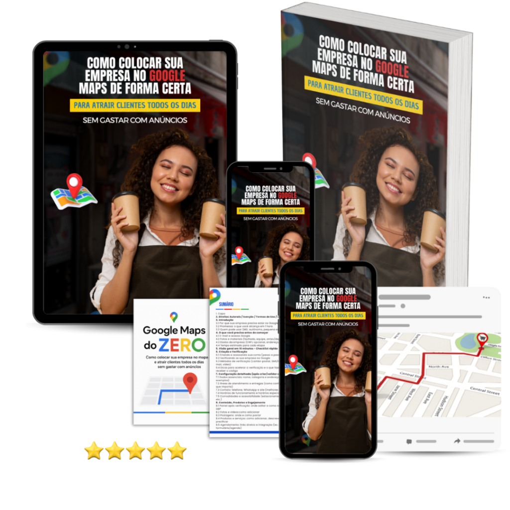 Coloque seu negócio no Google Maps e seja encontrado por clientes próximos, aumentando suas vendas todos os dias sem gastar com anúncios. Faça seu perfil se destacar e conquiste a confiança de quem está pronto para comprar.